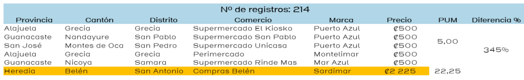 Entre los principales hallazgos destacan las amplias diferencias de precio en presentaciones similares de atún en trocitos en aceite y con vegetales, así como en sardinas en distintas presentaciones y tamaños. Para el estudio se utilizó el Precio por Unidad de Medida (PUM), herramienta clave para comparar el costo real entre productos.